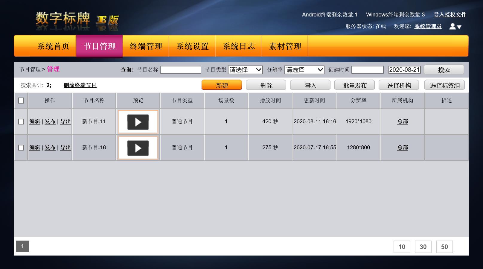 (一)数字标牌E版软件管理端系统功能